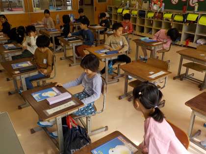 1時間目に学級活動を行いました。学校生活の決まりごとや約束を学びました。