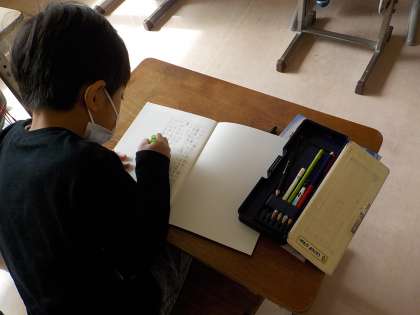 4年生は国語科で、春休みに楽しかった思い出等を振り返って、作文に書きました。