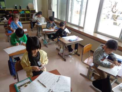 今日は、水・木のテストに向けて2年生の復習をしました。久しぶりの算数でしたが、プリントが配られると集中して学習に取り組むことができました。明日から教科書を使って学習します。3年生では新しくはじまることがたくさんあります。楽しんで取り組みたいですね。