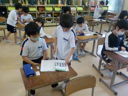 2年生は算数科で、「わかりやすくあらわそう」の学習をしました。すきな遊び調べの結果から分かったことをグラフや表にまとめて考えました。