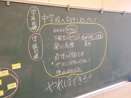 6年生は学級活動で、クラスの目当てや係活動を考えました。最高学年としてみんなの願いが込められた目当てに向かってがんばってください。
