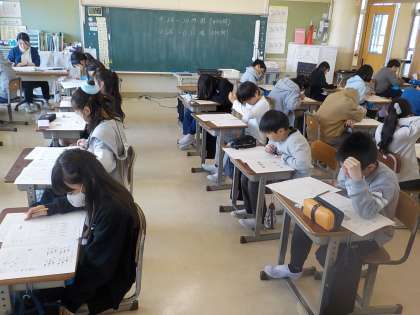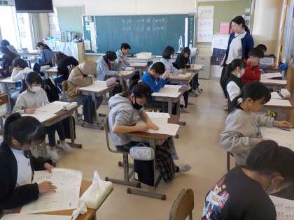 5年生は国語と理科の学力調査問題にチャレンジしました。国語では説明文をしっかりと読み取って問題に答えていました。