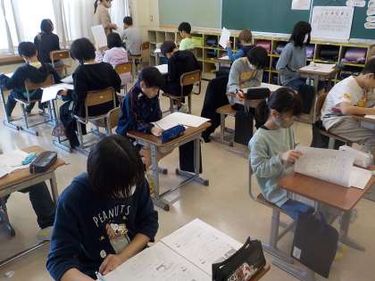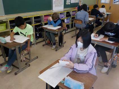 6年生は国語と理科の学力調査問題にチャレンジしました。自分の身に付けた知識を確かめるために、粘り強く考えていました。