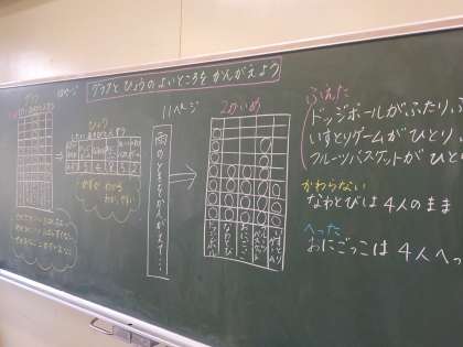 調べたことをグラフや表で整理してまとめました。グラフや表にまとめるよさを考えました。