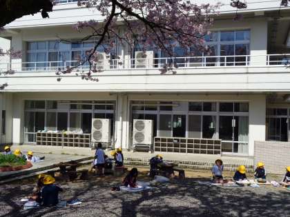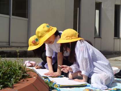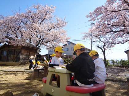 気持ちよい晴れの天気となったので、なかよし広場で「おはなみスケッチ」をしました。