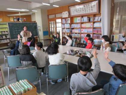 図書館司書の竹井先生のもと、図書オリエンテーションを行いました。