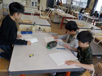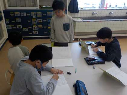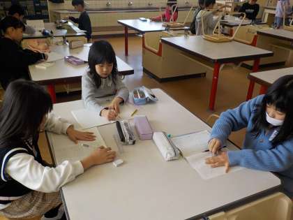4年生は初めての理科の学習で、「理科室にはどこにどのような道具が置いてあるか?」を調べました。