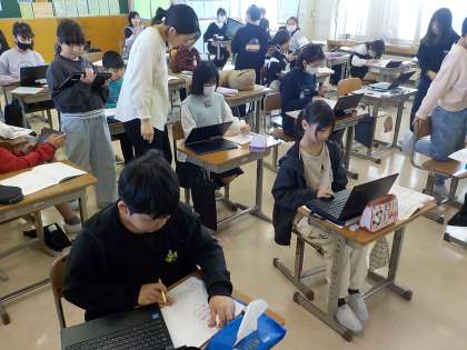 5年生は算数科の授業の終末に、分かったことや考えたことを振り返り、ノートや端末にまとめました。