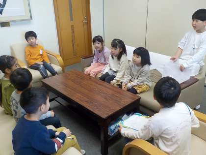 1年生は生活科の学習で、2年生に案内されて学校探検をしました。そして、校長室にもワクワクドキドキの可愛らしい1年生がやってきました。