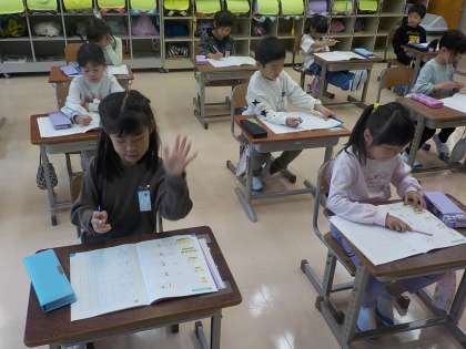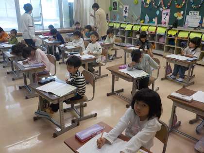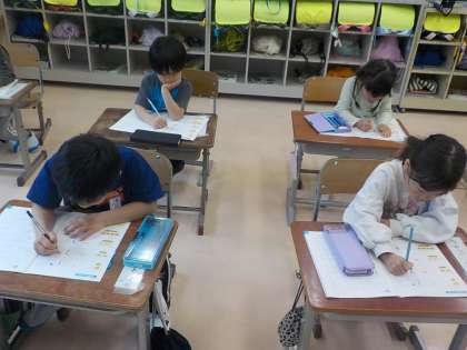 1〜10までの数字を学習します。それぞれの物の数に合わせて印を付けながら学びました。