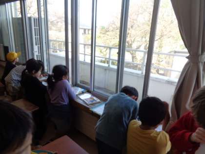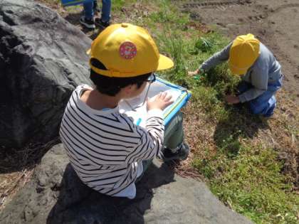 理科では、春の生き物を探しに行きました。色・形・大きさに注目して観察しました。虫眼鏡も使って、より詳しく観察することができました。