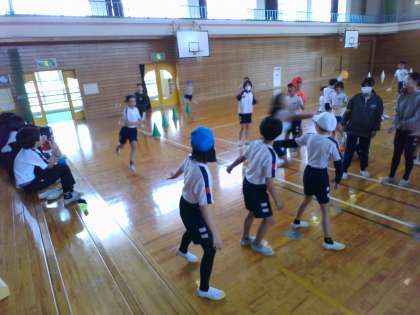体育では、色団対抗でリレーをしました。精一杯走る姿がたくさん見られました。