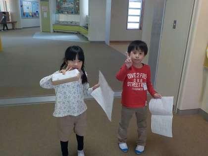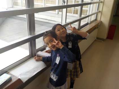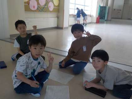 1年生は、学校の中を探検しながら調べ活動を行い、クイズに答えました。