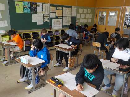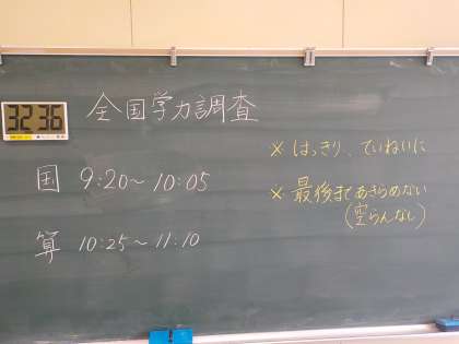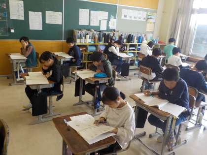 6年生は国語科と算数科の全国学力学習状況調査に取り組みました。子供たちは、真剣に問題を解いていました。