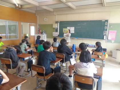 月に一度のお話の会です。紙芝居を読んでいただきました。絵に見入ったり、静かにお話に耳を傾けたり。「人に親切をするとよいことがある」「よくばってはいけない」という教訓がわかるおもしろいお話でした。