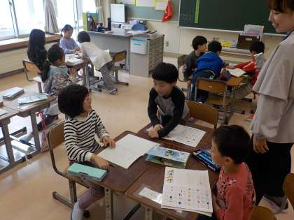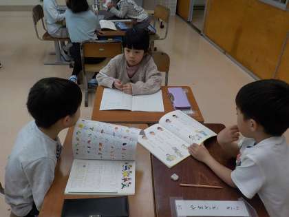2組の子供たちも、1組と同様に言葉集めをしました。グループの友達と対話しながら進めていました。