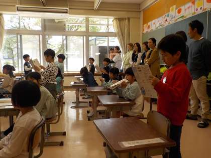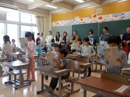 初めての学習参観で、子供たちはとてもうれしそうにしていました。