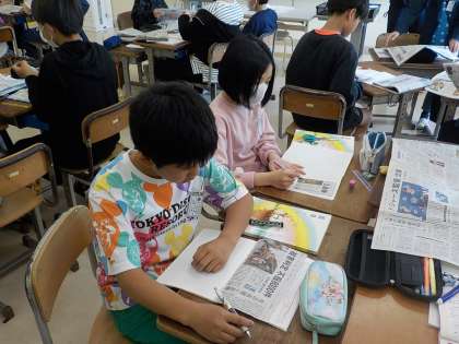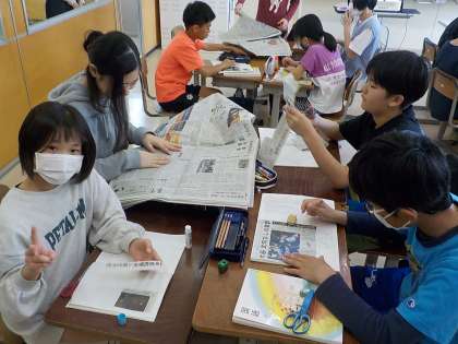 気になる新聞記事を切り抜き、その理由をまとめたり、対話したりしました。