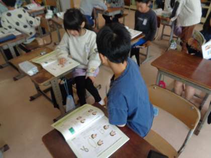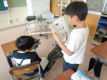 道徳では、ある場面について自分だったらどのように伝えるか考え、伝え合いました。優しく声かけすると、優しい声かけが返ってくることに気付きました。思わず強い口調になってしまう自分がいると、普段の自分の姿を振り返っている人もいました。少しずつあたたかい言葉のキャッチボールができるようになるといいですね。
