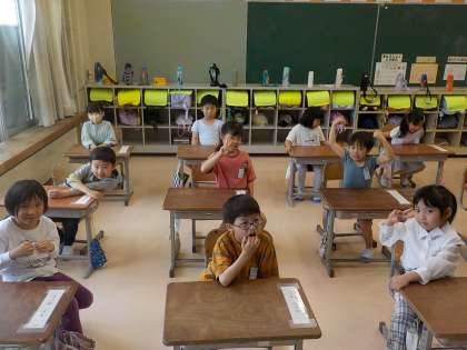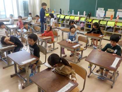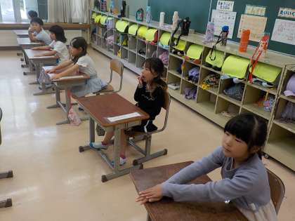 1年1組では席替えを行いました。新しい座席で勉強をがんばります。