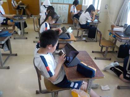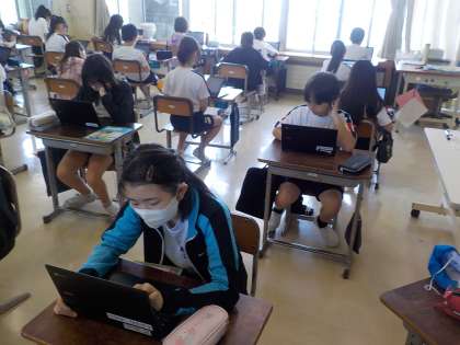 整数や小数の仕組み、立体の体積の求め方等、既習内容を振り返って復習をしました。クラウド教材やプリントから選んで取り組みました。
