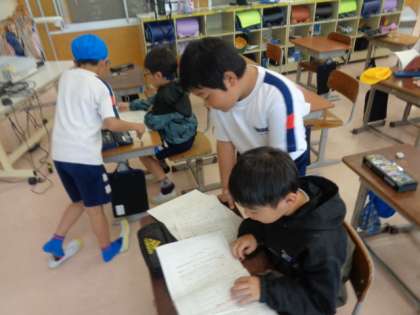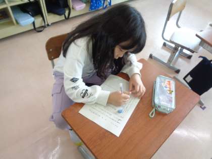 国語では、「春風をたどって」という物語を読み進めてきました。昨日は物語の続きを自分でワークシートを選んで取り組みました。複数枚取り組んで、レベルアップできるよう頑張る姿がありました。今日は、考えた物語を友達を読み合いました。自分では思いつかないアイデアに気付いたり、自分の物語のよさを伝えてもらったりして、友達と関わり合いながら学習している様子がすてきでした。