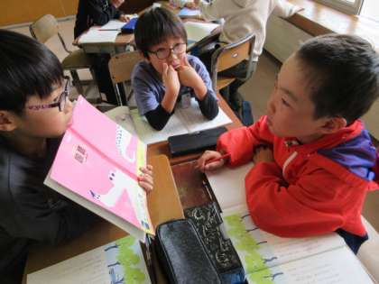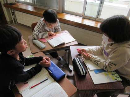 国語科「白いぼうし」では、作中でふしぎに思った出来事について自分の考えも含めて発表しました。内容を深く読み取り、考えを相手に伝えることができました。