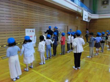 ファミリー班競技の練習後は、各団、応援練習を行いました。少しずつ声の出る団が増え、気合いが伝わってきました。