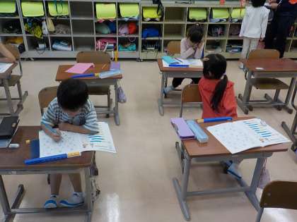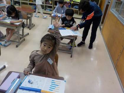 「10はいくつといくつ」という課題で数の合成を学習しました。いくつといくつを合わせると10ができるかはとても大切な学習のポイントです。