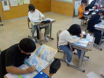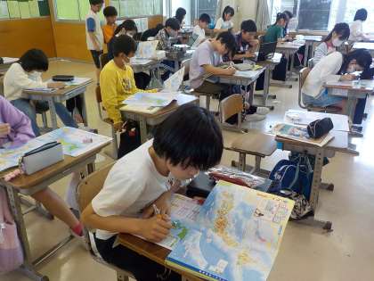 全国の都道府県の場所を調べながら、ワークシートに書き込みました。