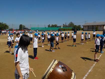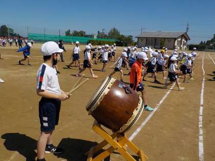 今日の応援合戦の練習から、和太鼓を鳴らしながら応援を行いました。太鼓にリズム合わせて応援すると、声の出方が大きくなりました。