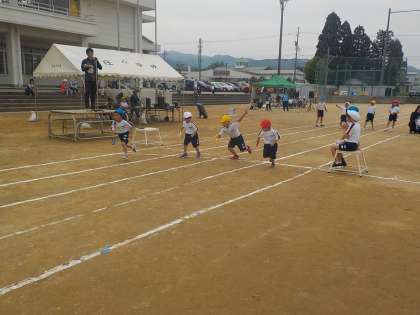 1年生から6年生の各団男女1名ずつがバトンを繋いでリレーを行います。