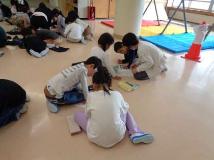 来週の校外学習の準備を進めています。1年生は校外学習で2年生と魚津水族館とミラージュランドに行きます。今日は事前学習として、ファミリー班の2年生と一緒にめあてを決めたり、どのアトラクションに乗るかを話し合ったりしました。来週が楽しみですね。