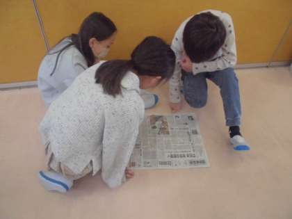 まず、新聞の一面にはどんなことが書いてあるのか、調べています。