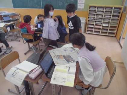 「聞き取りメモのくふう」の単元でインタビューしたことや新たにみんなに伝えたいことをグル1つの1つの新聞にします。