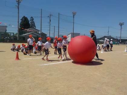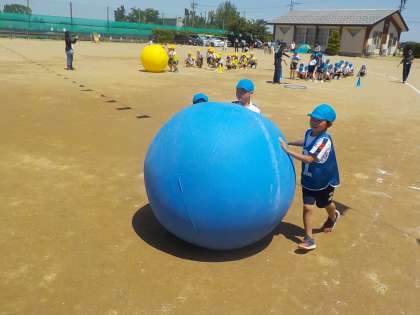 下学年の団体競技 大玉ころがしです。今年度、大玉を購入して行いました。