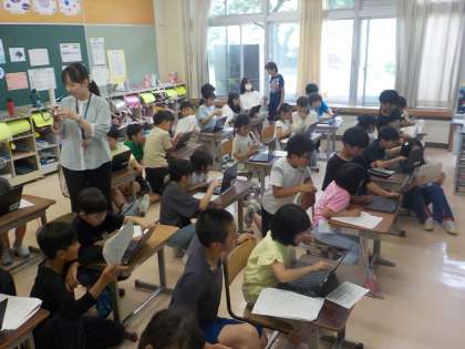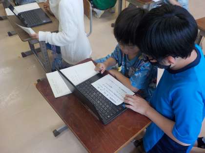 1年生の横について、丁寧にタブレットの使い方を教えていました。下級生に優しく接している姿がたくさん見られました。