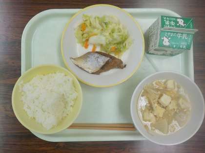 今日の給食メニューは ごはん ふくらぎの照り焼き 野菜ソテー 厚揚げの中華煮込み 牛乳 です。