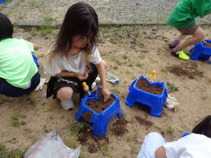 「にこにこあさがお」の学習で、あさがおの種を植えました。種一つ一つには命があることを学び、優しく土をかけたり、丁寧に水やりしたりと、大切に育てようとする様子がありました。大きく育ってほしいですね。