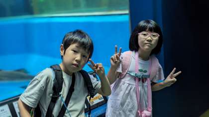 お気に入りの魚を探しながら見学しています。