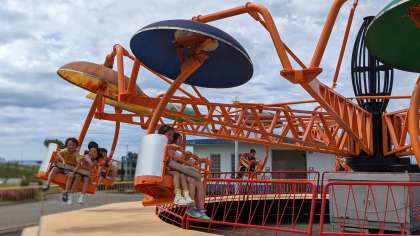 友達と相談してアトラクションを決めています。