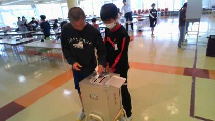 富山市選挙委員会の方に学校に来ていただき、選挙について教わりました。模擬投票も行い、楽しみながら学習しました。