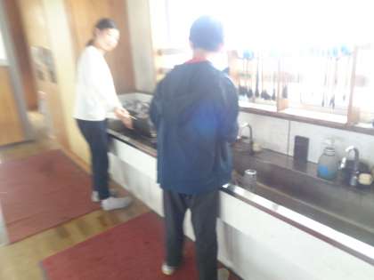 掃除の時に、自分たちが担当しているワークの床掃除だけではなく、余った時間に棚を整頓したり、洗面所を掃除したりと進んで環境を整える姿が見られました。とっても素敵な行動です。
