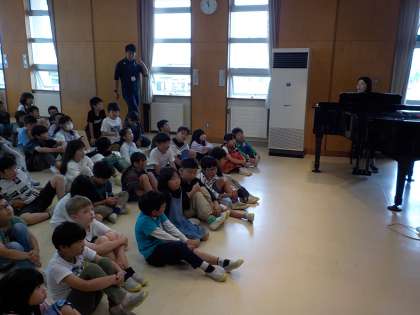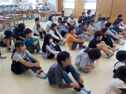10月に行われる区域連合音楽会に向けて、合唱候補曲を聞いたり、歌ったりしました。