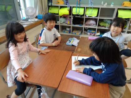 学級活動の様子です。係活動を始めました。それぞれの係に分かれて、これからの活動の見通しをもちました。アイディアを出し合って、クラスを盛り上げていってほしいと思います。