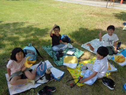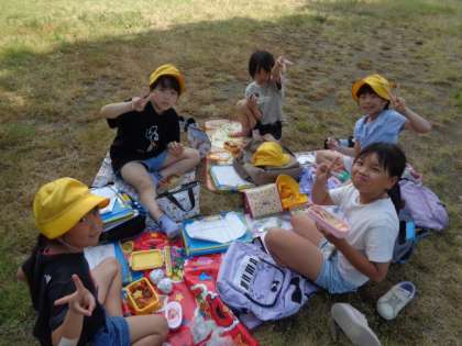 城址公園でお弁当を食べました。良い天気で気持ちの良い中食べることができました。お家の方のお弁当を嬉しそうに見せてくれました。お弁当づくりありがとうございました。