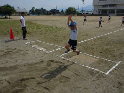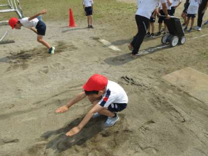 体育では、走り幅跳びを行いました。着地の姿勢や助走のリズムなどのポイントに気を付けて取り組むことができました。
