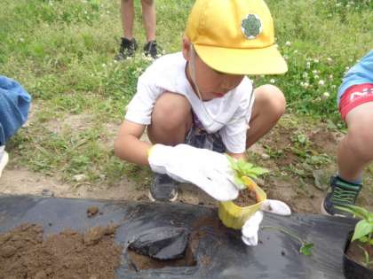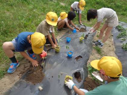 4月に種をまいた植物が大きくなってきたので、畑に植え替えました。植え替えのポイントを確認してから活動しました。これからもっと生長する姿を観察できるといいですね。