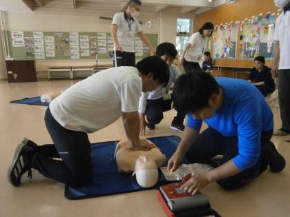 お子さんたちの命を守るための研修に、教職員も真剣な表情で取り組んでいましたよ。