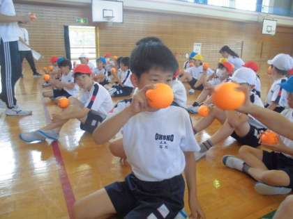 富山市スポーツ協会の方に来ていただき、正しい投げ方を教えてもらいました。